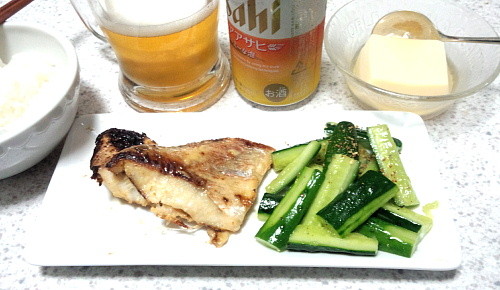 晩飯はサワラの西京焼きで。