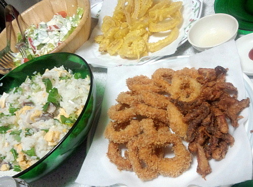 晩飯は、イカリングオニオンリング