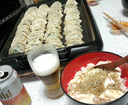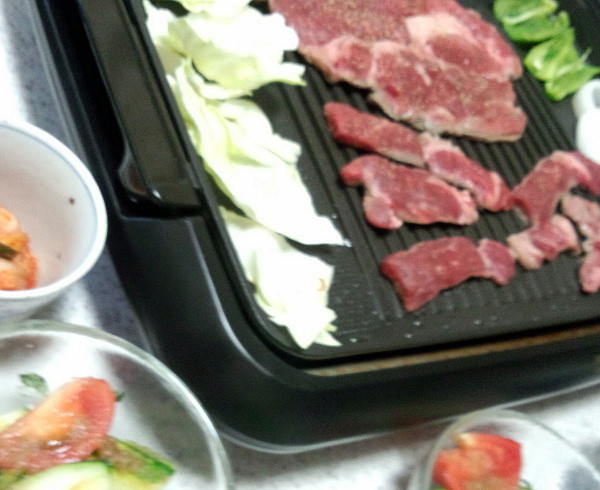 我が家では恒例の鉄板焼きと
